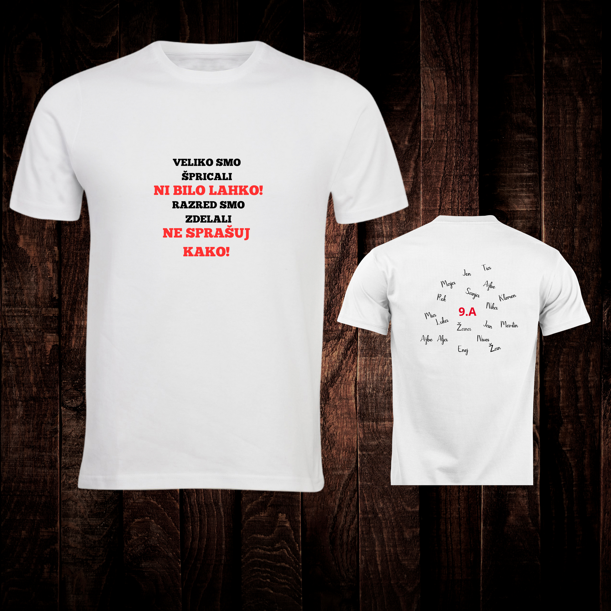 Na majici je možnost dotiska imen učencev